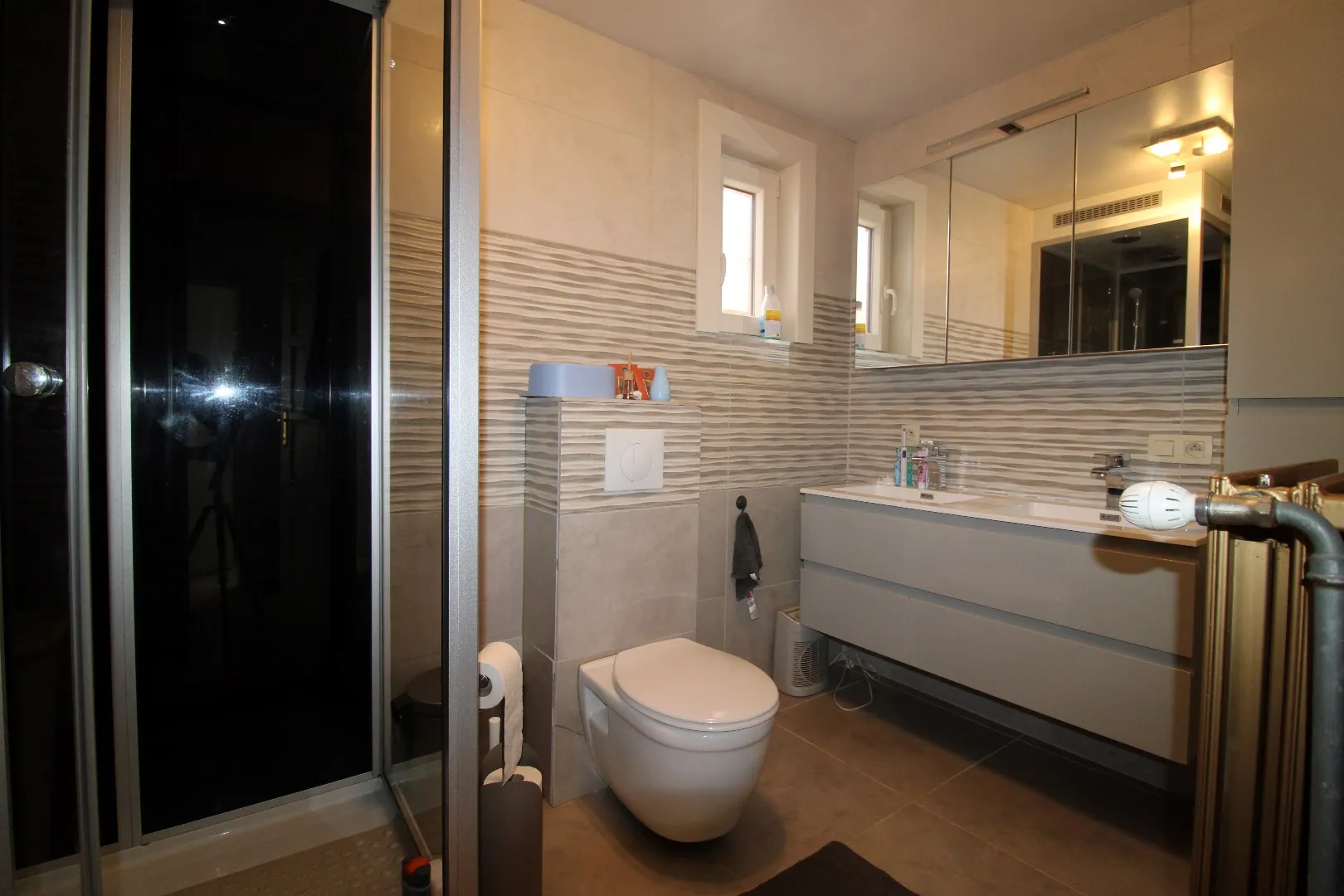 Op het gelijkvloers hebben we een ruime leefruimte, een volledig geïnstalleerde keuken, een recente badkamer, berging, wasplaats en een slaapkamer.