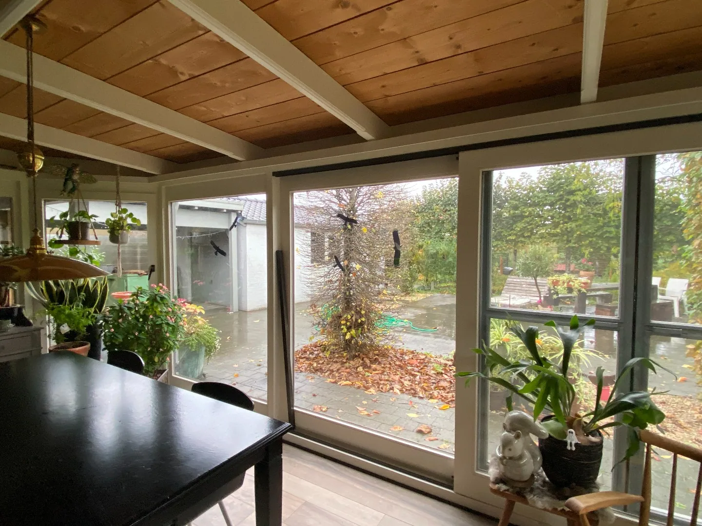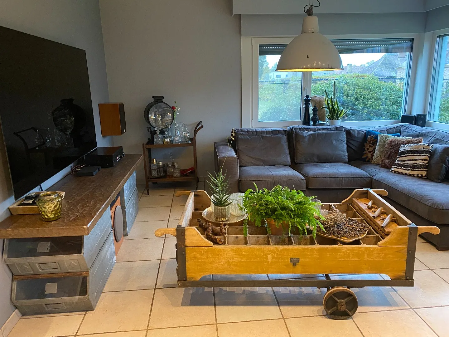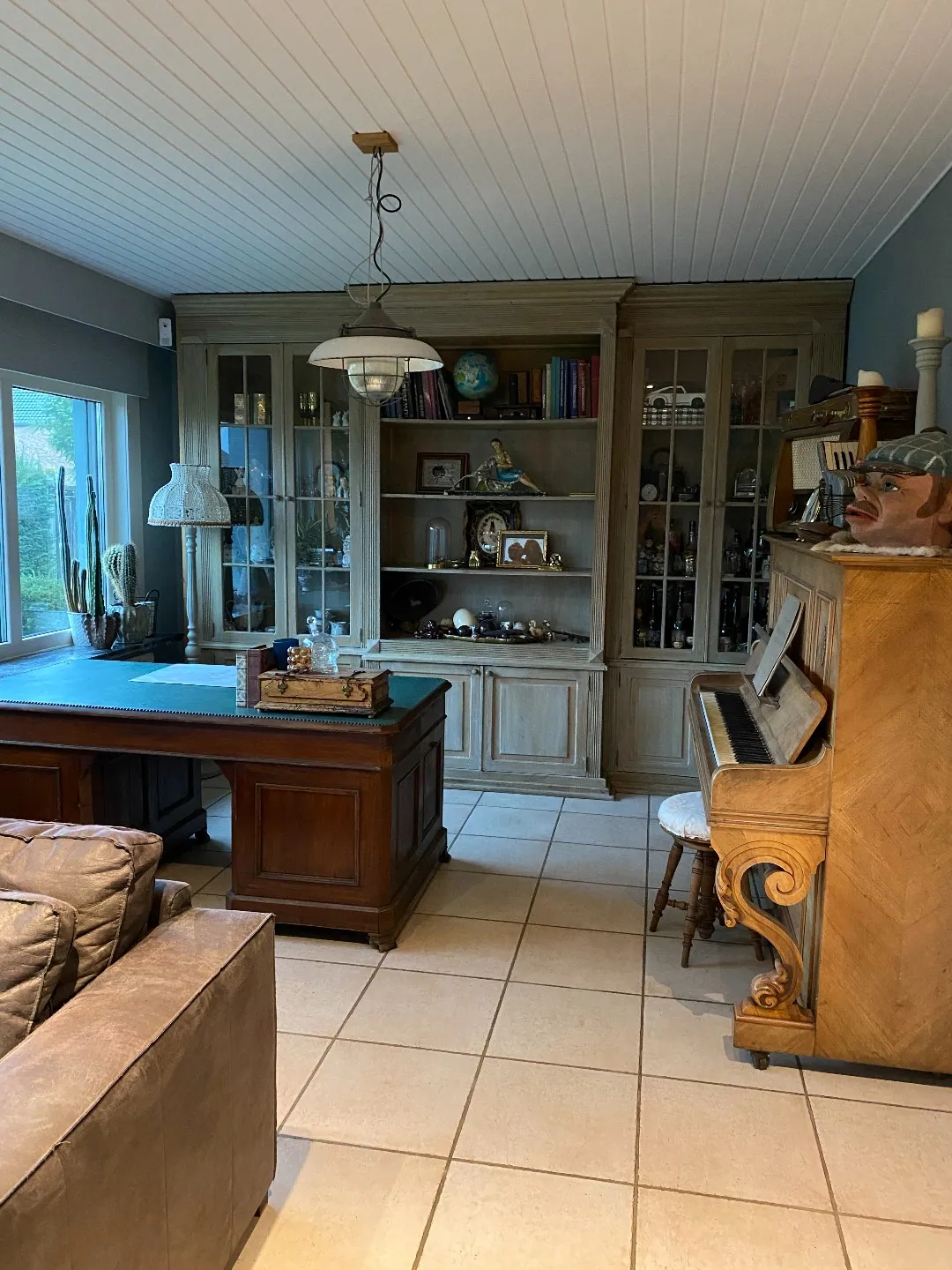 Op het gelijkvloers hebben we de living, een aparte volledig geïnstalleerde keuken, het apart toilet, de wasplaats/berging, de badkamer, speelkamer/bureau, muziekkamer/berging en de veranda met zicht op het terras en de tuin.
