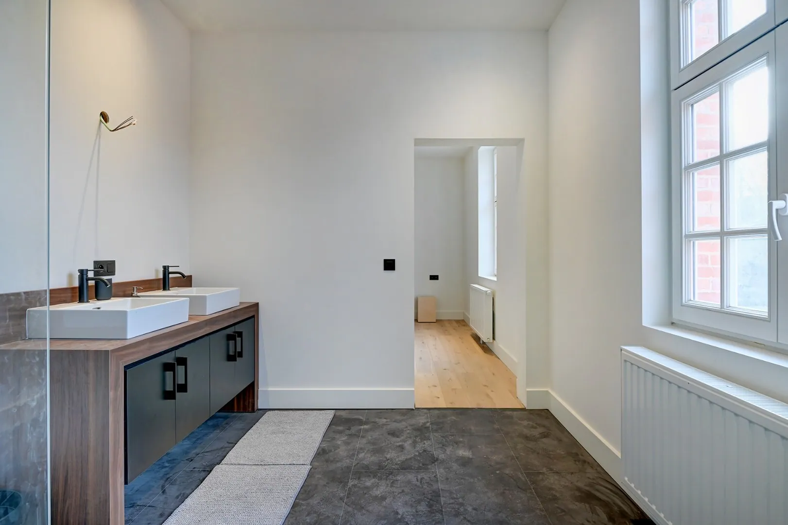 Op de eerste verdieping zijn er twee slaapkamers met elk zijn eigen badkamer.