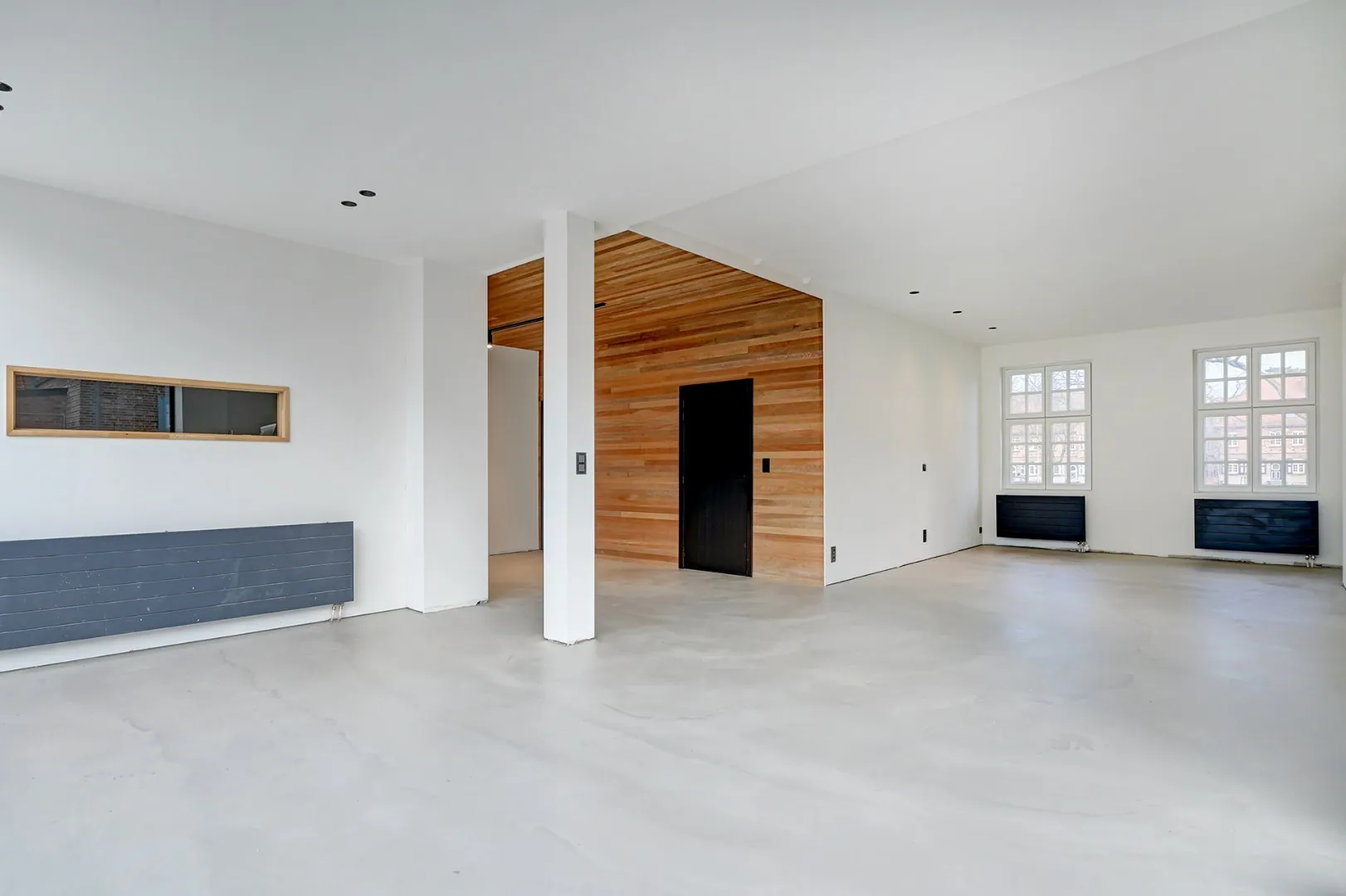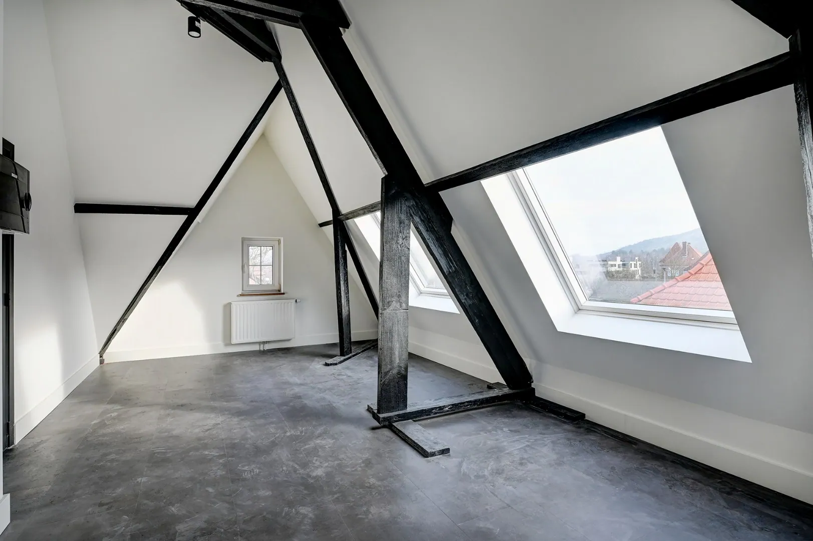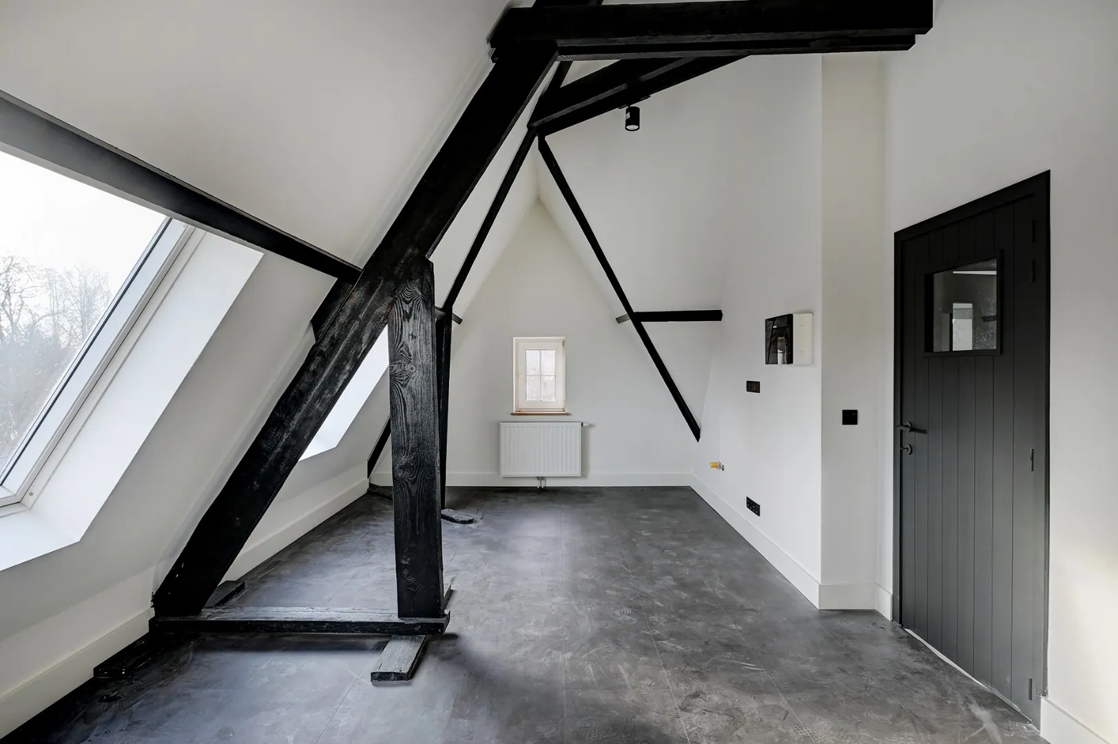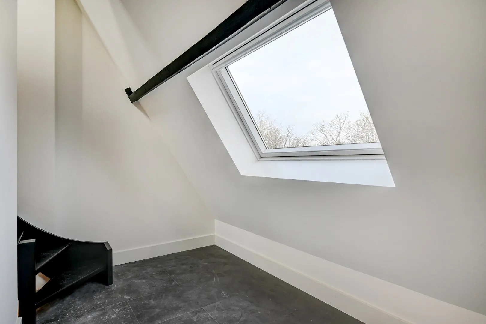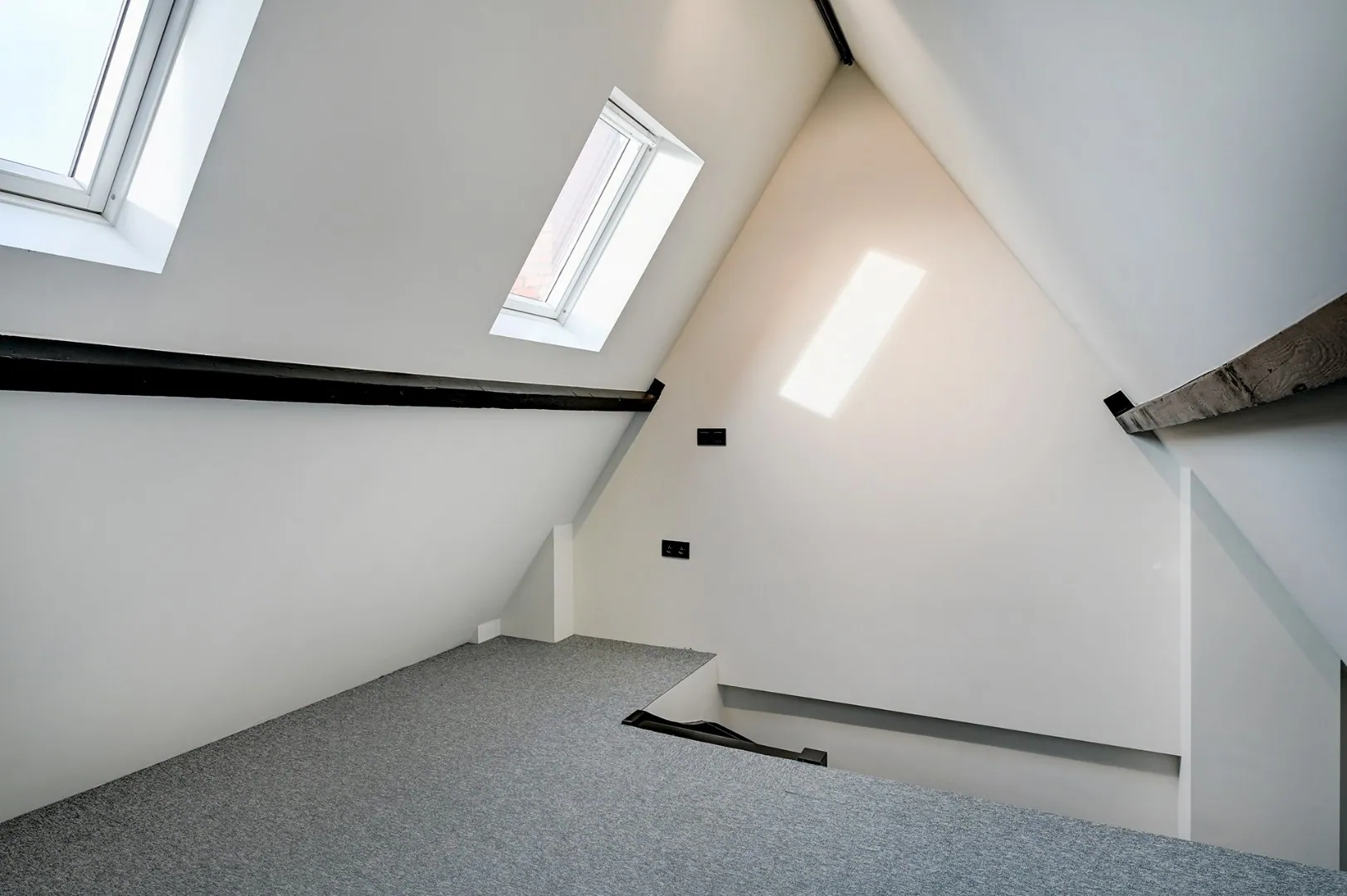 Op de tweede verdieping is er één grote slaapkamer met badkamer en nog een mezzanine.