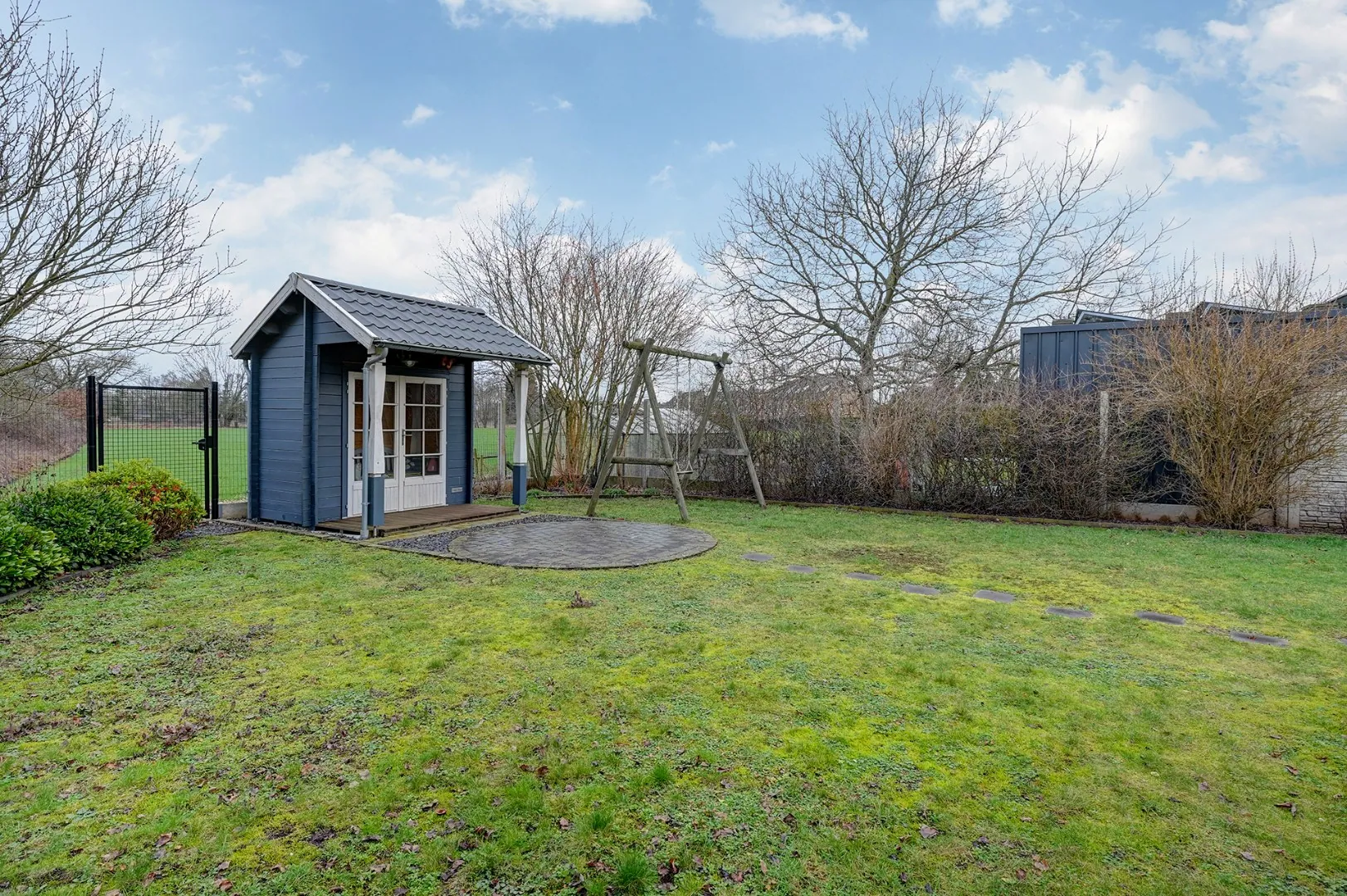 In de tuin kan je genieten van de rust door de open vlakte achter het perceel.