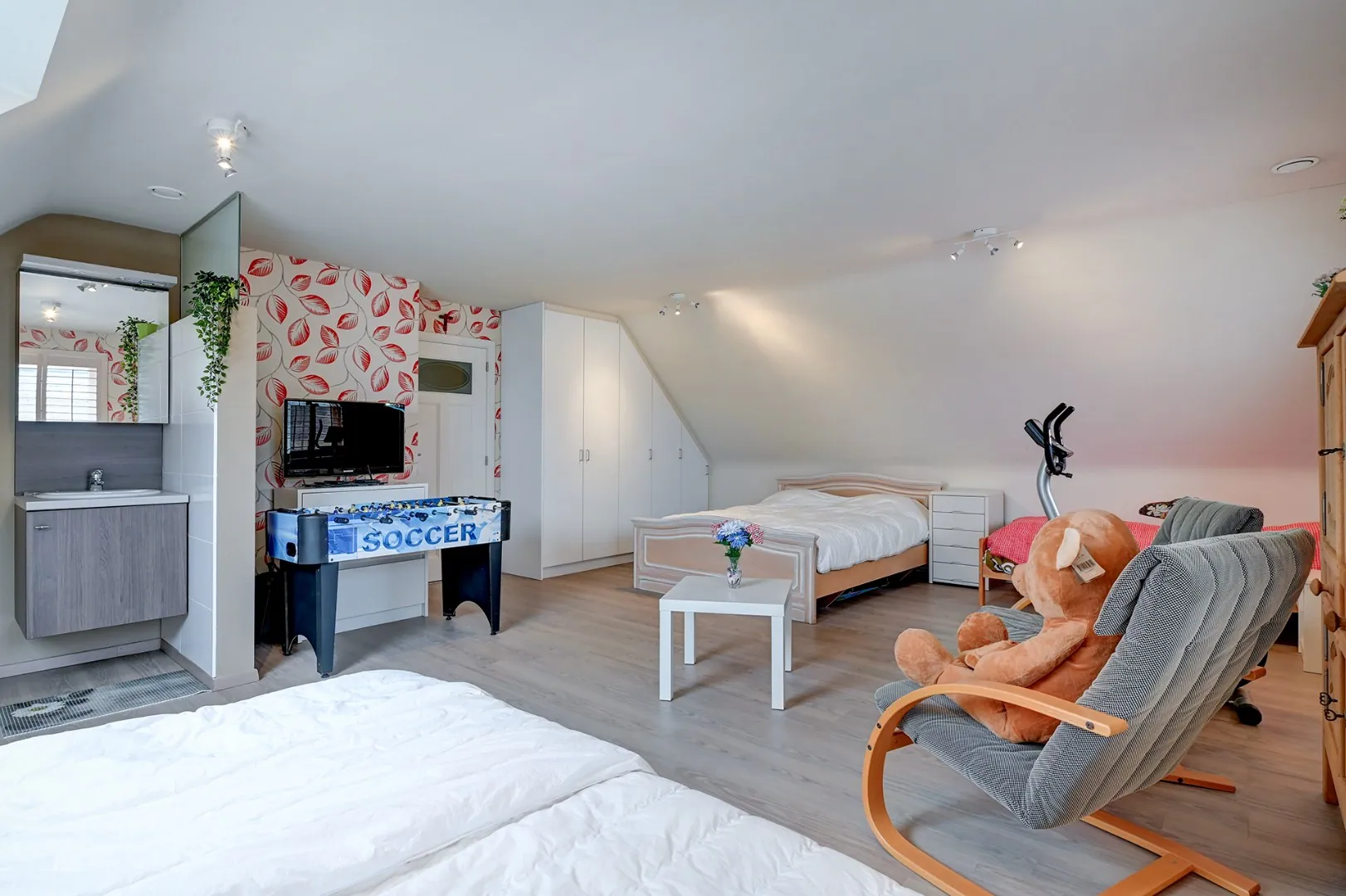 Boven zijn er nog drie slaapkamers en een badkamer.