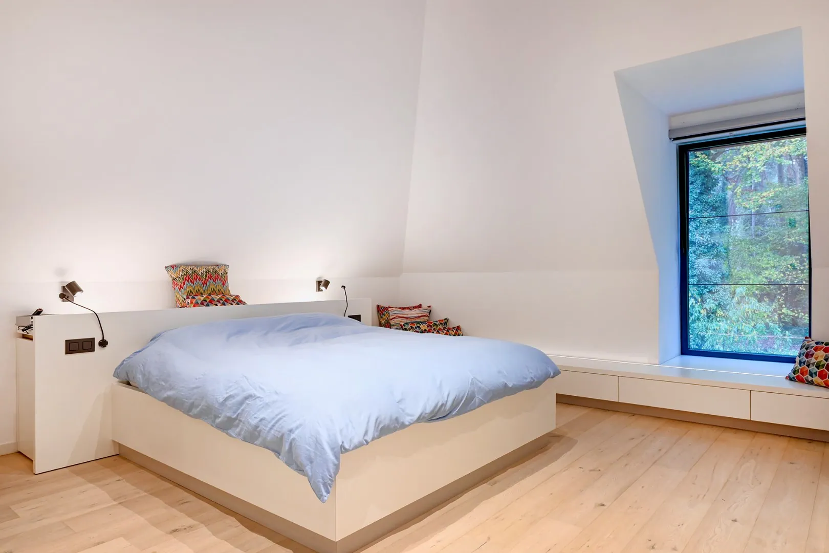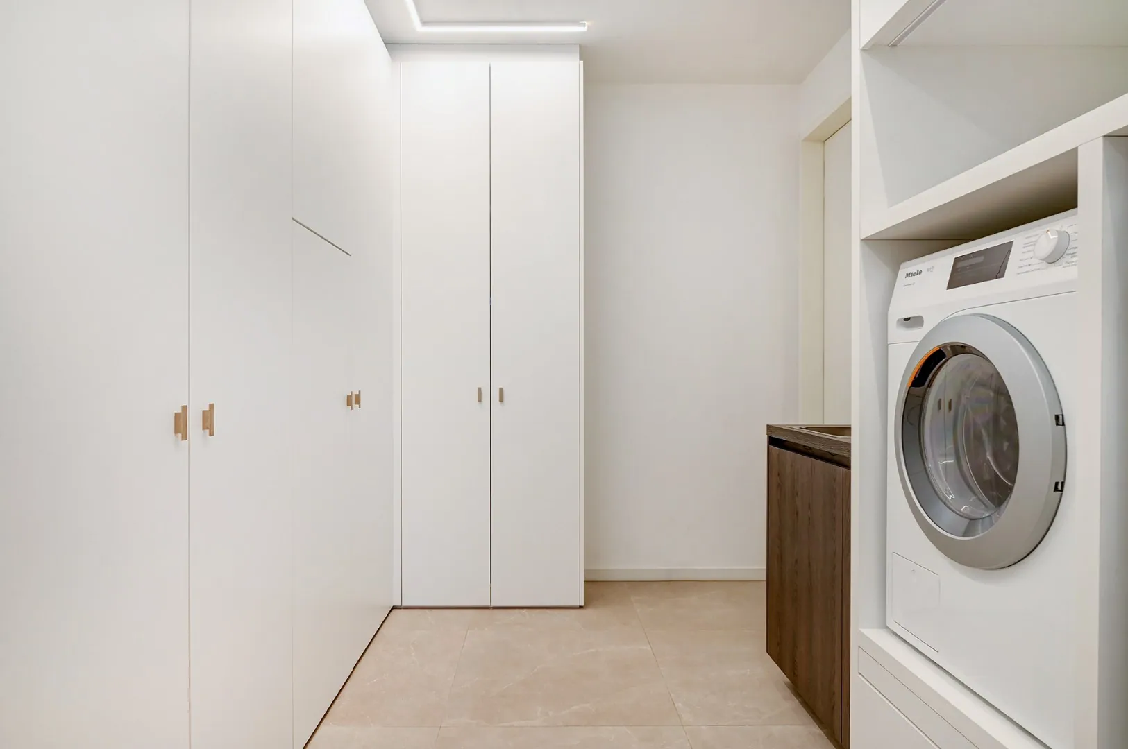 Bij binnenkomst valt meteen de stijlvolle afwerking op. De villa beschikt over drie ruime slaapkamers, waarvan één met een aansluitende dressing voorzien van ingemaakte kasten. Daarnaast zijn er door de hele woning ingemaakte kasten, wat zorgt voor optimaal gebruik van de ruimte en een opgeruimde uitstraling. De vloerverwarming en parketvloeren creëren een behaaglijk gevoel in elke ruimte.