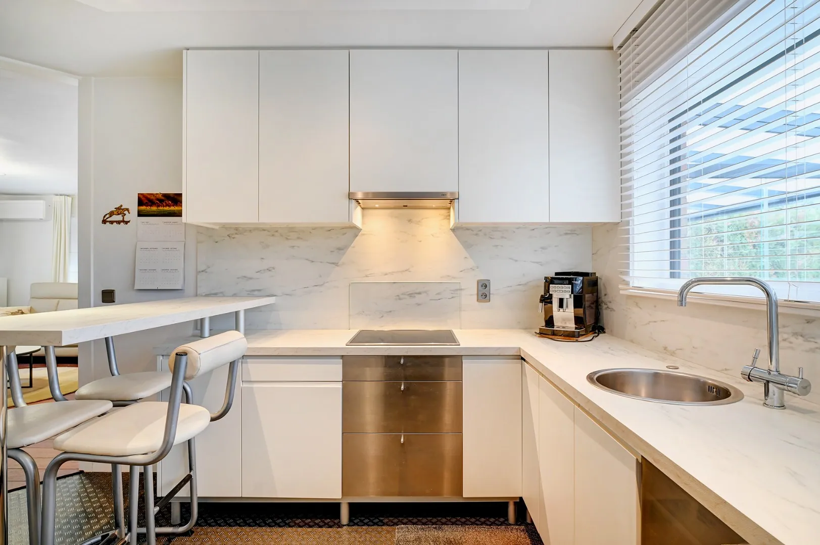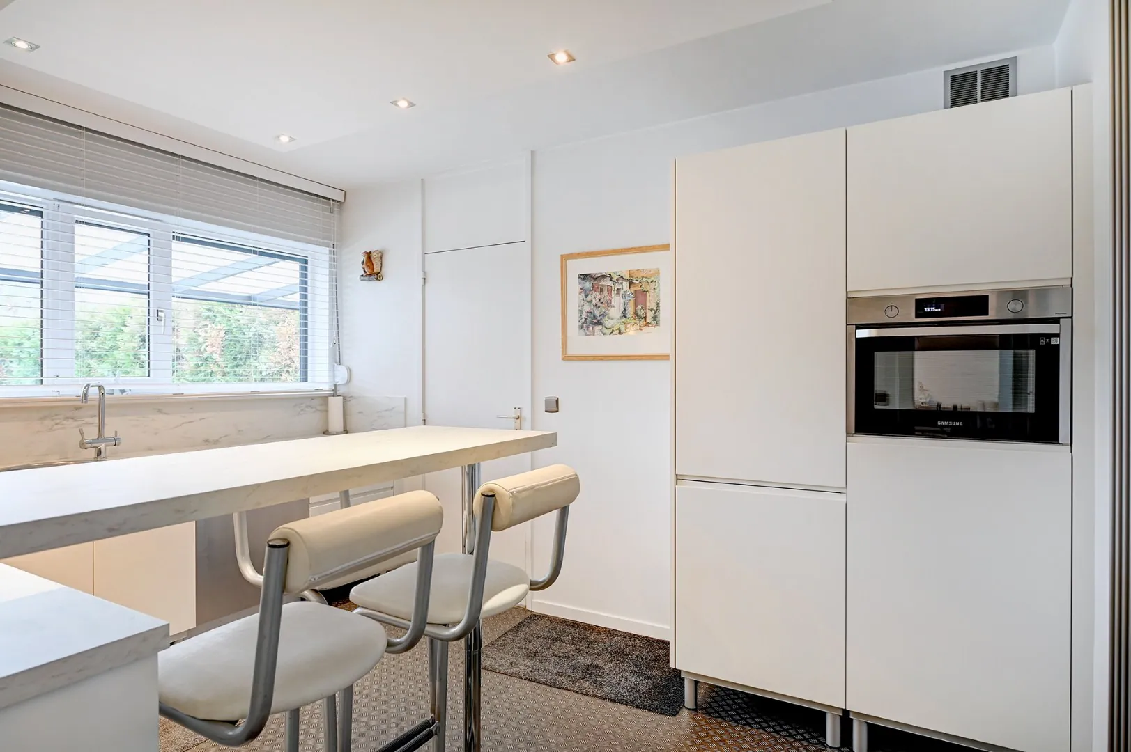 De keuken is voorzien van toestellen zoals koelkast met diepvries, combi-oven en een vaatwasser.