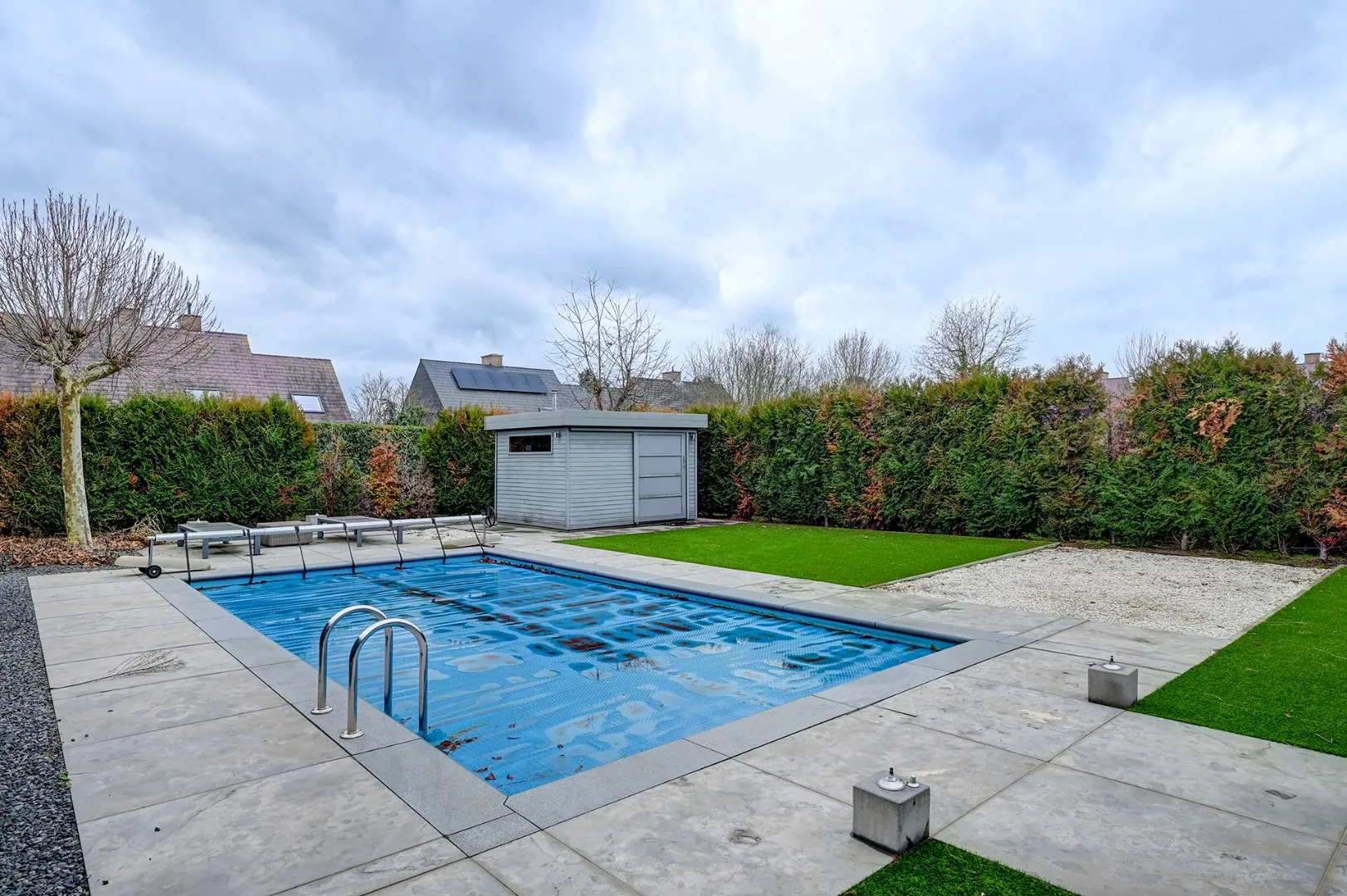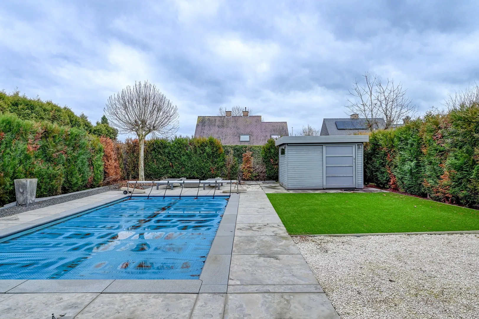 Het huis is voorzien van een onderhoudsvriendelijke tuin met kunstgras en een mooi zwembad. De zonnepanelen op het zuidelijk gericht dak dekken het volledige elektriciteitsverbruik.